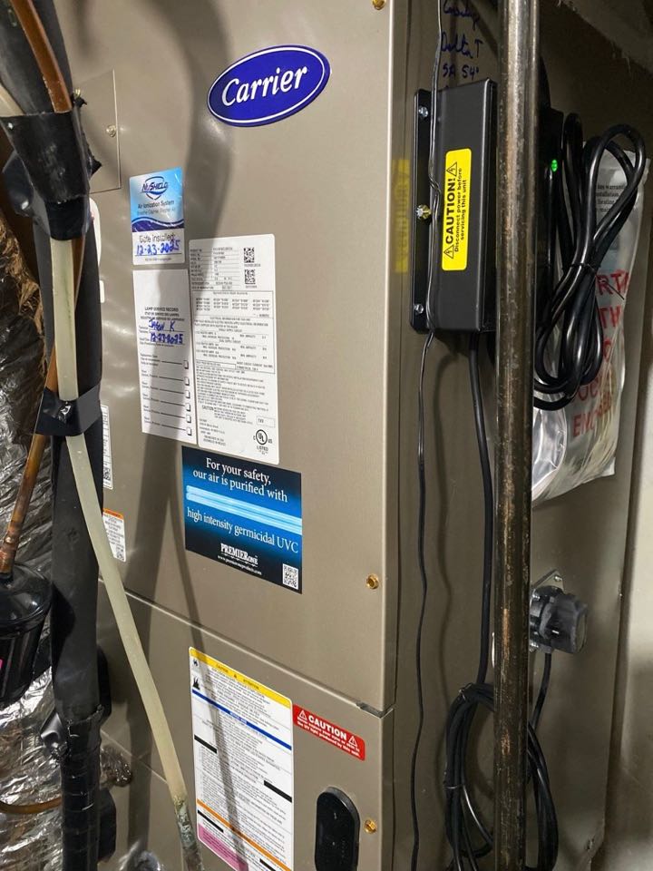 Carrier gas furnace heat inspection with Aprilaire media filter replacement.