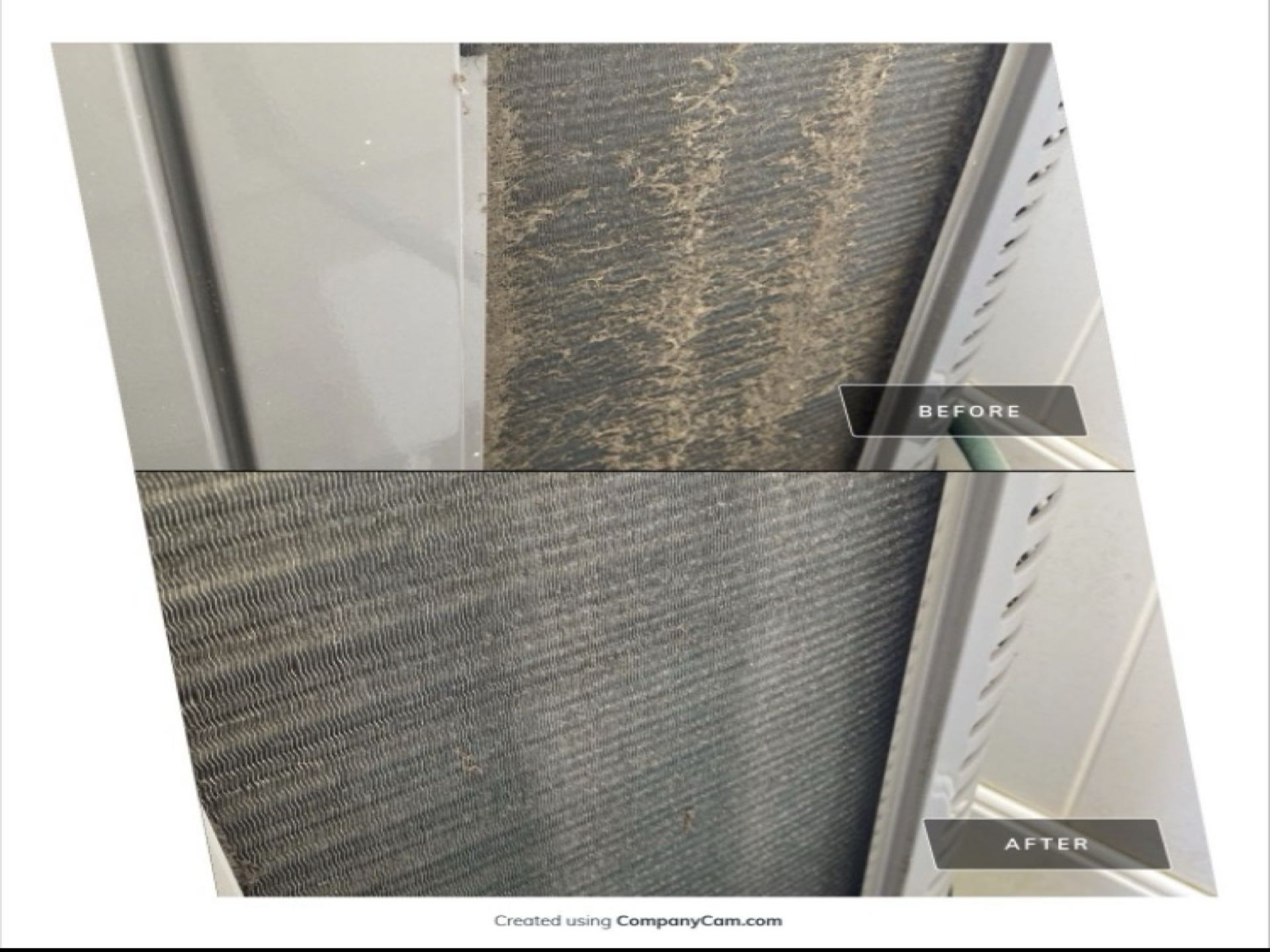 Before and after chemically cleaned blower assembly to improve airflow and air quality.