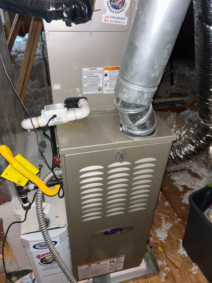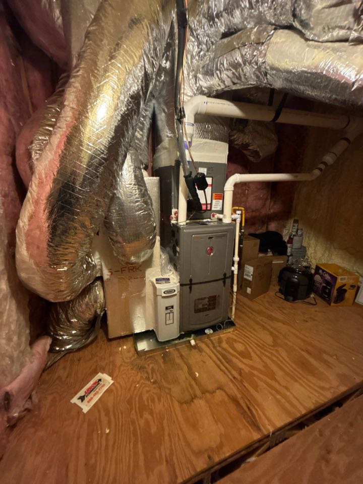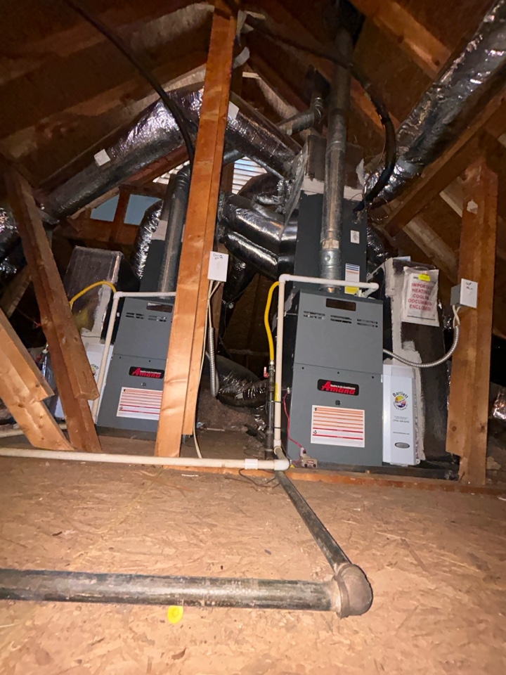 Heating maintenance on gas furnace horizontal in attic. No mechanical issues found at this time.