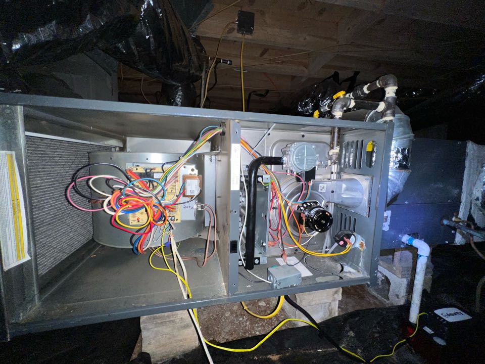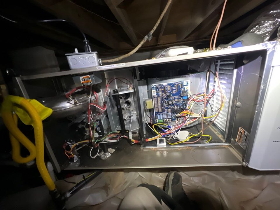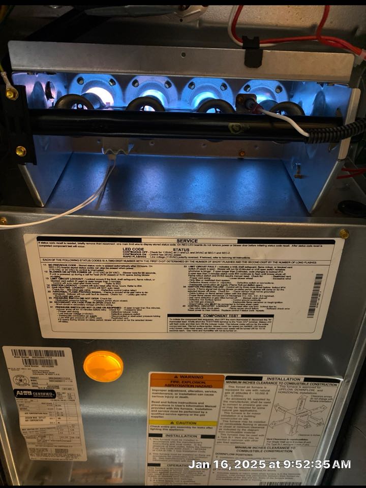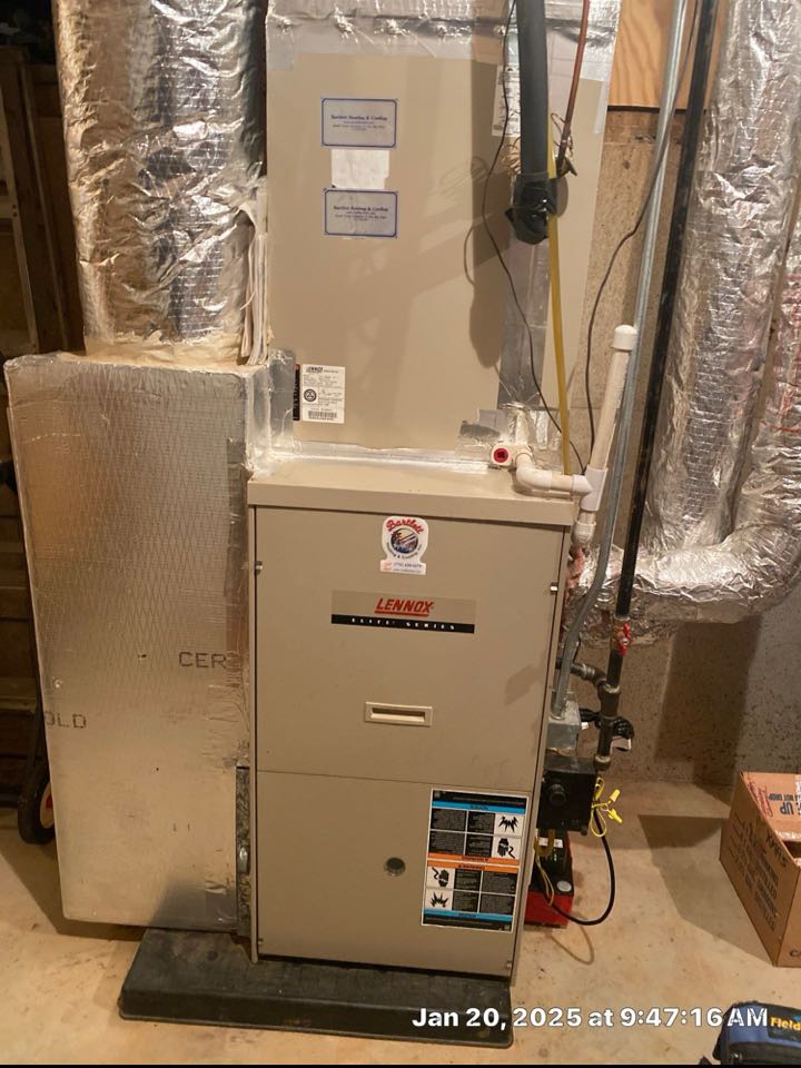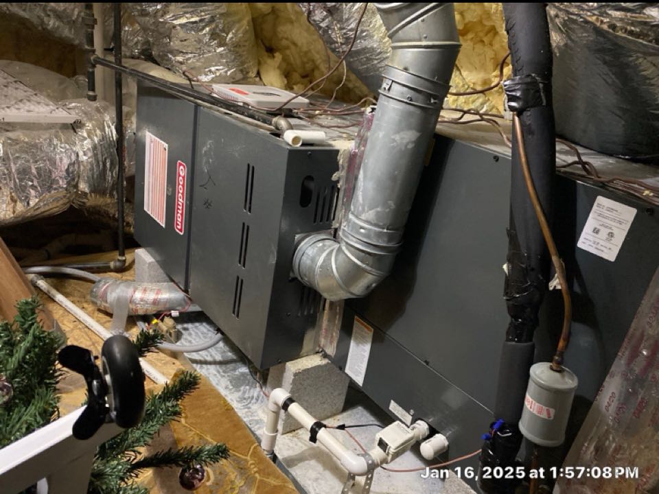 Replaced existing mechanical system. Relocated outdoor unit. Replaced return and supply plenum. Installed new thermostat. Cut in new 8 inch return. Tested heat and cool. System is working as needed. Thank you for choosing Bartlett Heating and Cooling.