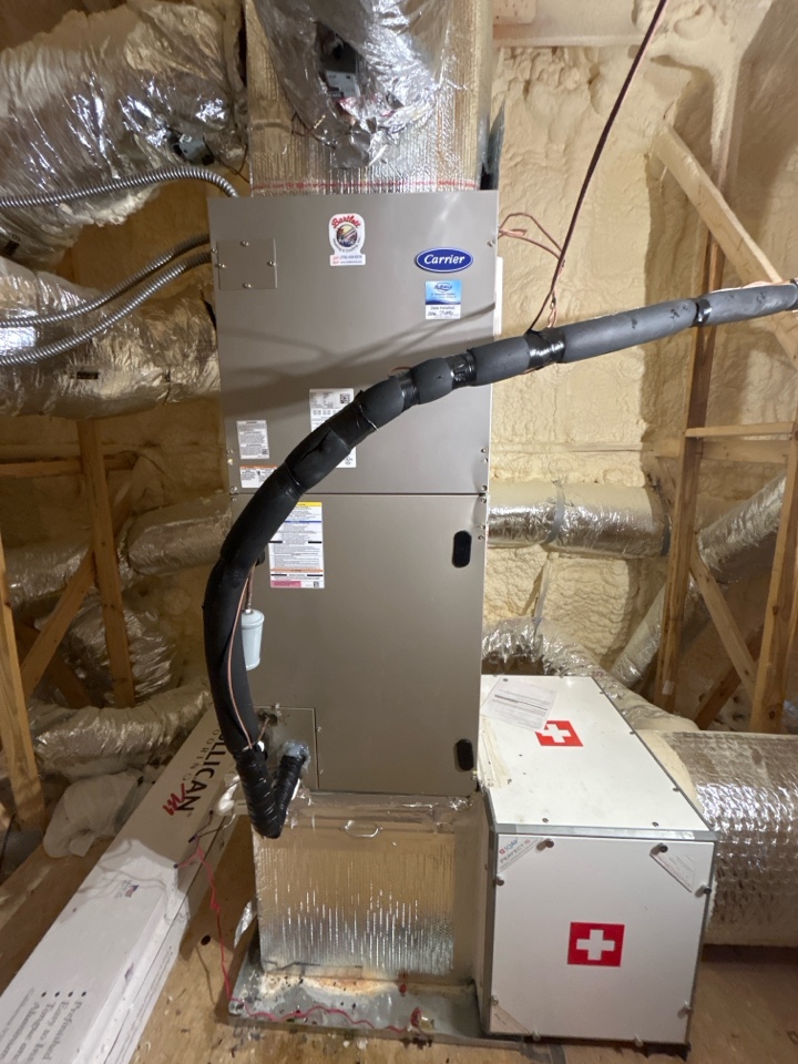HVaC heating maintenance on Carrier air handler and heatpump in Smyrna.