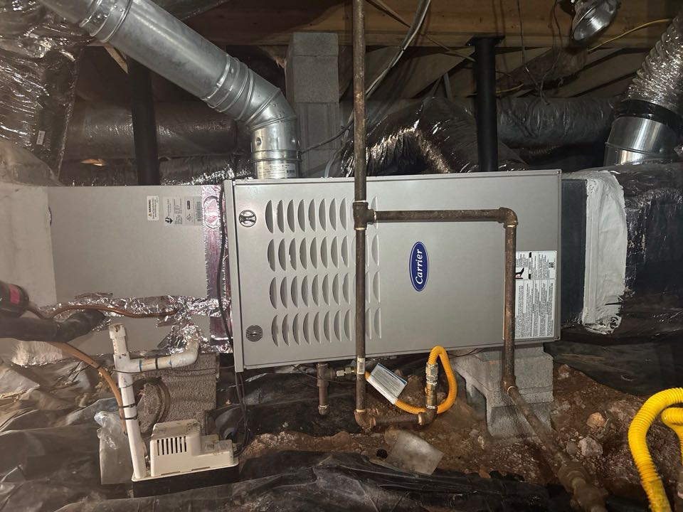 Heating maintenance on gas furnace located in crawl spaces found blower wheel impacted and biological growth inside of supply plenum and duct work. Installed uv light and conducted blower wheel cleaning