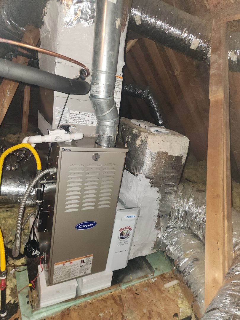 Installed new Carrier High Efficiency 2stage variable speed gas furnace Carrier condenser Ecobee Wifi Thermostat and Aprilaire media filter for basement and Carrier 2stage variable speed gas furnace Ecobee Wifi Thermostat and Aprilaire media filter for upstairs