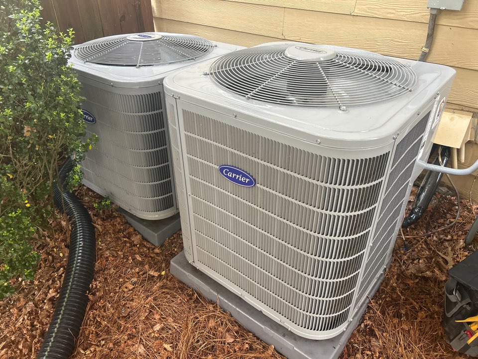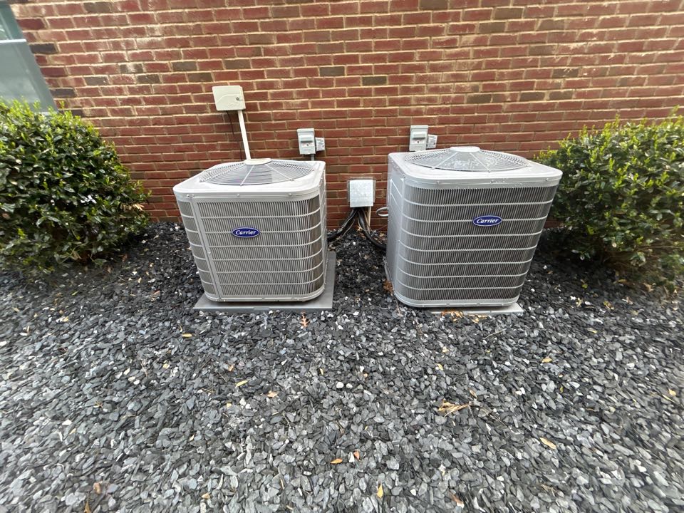 HVaC cooling maintenance on Carrier air conditioning systems in Smyrna. Friendly reminder to replace your air filters on a regular basis.
